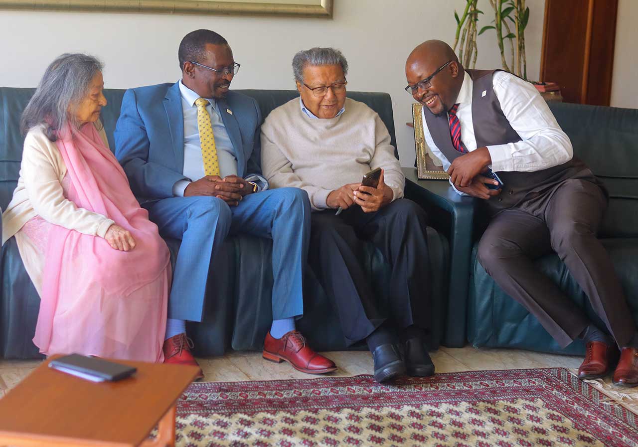 Our VC & CEO, Prof. Isaiah Wakindiki paid a courtesy call to Dr. Manu Chandaria, Honorary Alumnus of KCA University & Chairman of Comcraft Kenya Ltd and his wife Aruna Chandaria at their home.